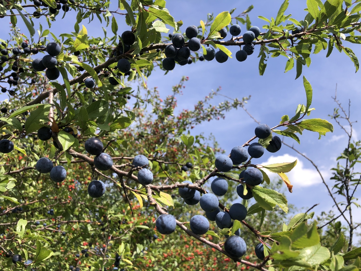 Sztánára érve el is indultunk Kispetri irányába, amikor furcsa látvány fogadott: a szép füves utat teljesen felásták és kiszélesítették, az útszéli bokrokat pedig sok helyen kivágták, előre sajnáltam a túrázókat. A mi útvonalunkon további kellemetlenséggel szerencsére nem találkoztunk, csupán néhány belógó szúrós bokrot kellett kivágnunk. Helyenként vadalmával, szilvával és nagy szemű kökénnyel ajándékozott meg a természet, így a szalagozás mellett falatozásra is szántunk időt. Egyszer csak Botond hívott, hogy van egy kis gond, ugyanis Sztána határában, ahol a bicikliseknek kellene elhaladniuk, beszántották az utat, kukoricatábla lett a helyére. Ráadásul kiderült, hogy a Kispetri határában épülő út Sztánán folytatódik az alagútig, az egész egy nagy bicikliút-építési projektnek a része, amellyel össze akarják kötni a Varjúvárat az Almási-várral. Mi is tettünk egy kört a problémás részeken, hogy lássam, mi minden változott egy év alatt. Közben rögzítettünk egy új nyomvonalat is, hogy a bicikliseknek a lenti kerülő utat ajánljuk alternatívaként. Miközben a kalotanádasi út felé vettük az irányt, Botond elmesélte, hogy két helyen is találkozott juhászkutyákkal, így a Riszeg-tető felé vezető út egy szakaszát nem tudta jelezni. Timiék is elmesélték, hogy Kiskapus fölött egy egész kutyahad támadt rájuk, akik kb. 400 m szintet voltak képesek megmászni csak azért, hogy jól megugassák őket. A hazavezető úton tehát szorgosan jegyzeteltem, hogy mi mindent kell majd beleírnom a körlevélbe, amit kiküldök a résztvevőknek.