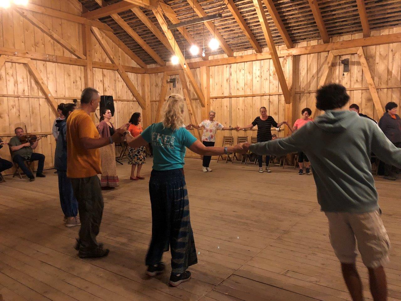 A települések utcái teljesen kihaltnak tűntek, alig találkoztunk néhány emberrel, a gabonaföldeken viszont aratógépek serénykedtek. A nap forrón sütött, így jól fogott a biciklis sisak, de a lágy szellő is enyhítette a nyári meleget, amíg Csíkszentsimonra értünk. Vidáman tekertünk be a székelyek tiltott söréről elnevezett utcába, hogy ha már itt járunk, mi is tekintsük meg a híres manufaktúrát, a melegre való tekintettel pedig hideg gyümölcsös sörrel enyhítettük szomjunkat. Fél 6 körül már vissza is értünk a táborba (összesen 42 km-t letekerve 488 m szintemelkedéssel), így a harmadik túranap végére sikerült végre meleg vízzel tusolnunk, s a napi menünket is nyugodtan el tudtuk fogyasztani. 8 óra körül már türelmetlenül gyülekeztek a csapatok a régi csűrben a Szász Enikő által szervezett kocsmakvízre. (Egyébként a 2023-as sztánai táborban szerveztünk először kvízt, s olyan váratlan sikert aratott, hogy tavaly és idén is meghirdették, így lassan ez is hagyománnyá válik). Ingrid, a csapatkapitányunk, a Csiperkék nevet választotta nekünk, mintha ráérzett volna, hogy a villámkérdéseknél gombákat is fel kell majd ismernünk. A Bulgakovos kvízesteknek köszönhetően, ahova már két éve rendszeresen járunk Yuppis csapatunkkal, ismerős kérdések is visszaköszöntek, így pl. eszünkbe jutott, hogy a Margarita pizza volt az a nemzeti színű étel, amelyet a királynőről neveztek el. Ennek ellenére nem sikerült bekerülnünk az első háromba, de még így is nagyon jól szórakoztunk és sokat nevettünk. A kvíz után nem maradt sok időnk felszusszanni, hiszen kezdődött a táncház és a tábortűz, a vándortáborok kötelező programpontjai. A táncházban nagyrészt csángó muzsikát húztak a zenészek, így bárki bekapcsolódhatott az egyszerű lépésekből felépülő körtáncokba, egy adott pillanatban pedig engem is berántottak a körbe. Öröm volt látni, milyen felszabadultan táncolt mindenki, és még azok sem zavartatták magukat, akik egyetlen alkalommal sem találták el a ritmust. Közben a tábortűz lángjai is fellobogtak, így a melegedni vágyók körbeülték, s kellemes hangulatban eleveníthették fel a hét legemlékezetesebb pillanatait, mások pedig énekléssel fokozták a hangulatot. Amikor elindultam lefeküdni, összefutottam Lukival és Ágival, így ki tudtam faggatni őket a Királykőről és a Bucsecs túráról, s őszinte elismerésemet fejeztem ki, amiért két ilyen nehéz túrát is bevállaltak.