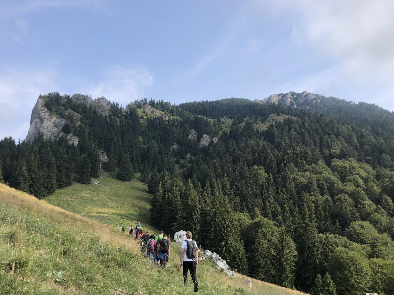 Két évvel ezelőtt jártam először a Csukásban, s akkor annyira magával ragadott a különleges sziklaképződmények látványa, hogy tudtam, legalább egyszer még vissza kell térnem. Mivel a nehéz túrák közül a Királykőt és a Bucsecs túrát nem mertem bevállalni, maradt a harmadik a sorban, amely teljesíthetőnek tűnt. Az eredetileg szerdára tervezett túrát az időjárás-előrejelzés miatt átraktuk csütörtökre, s mint utólag kiderült, a kolozsvári csapat egy része is ezt a napot választotta, így ismerősökkel túrázhattunk. A reggel 6 órai indulást sajnos nem lehetett lespórolni, ugyanis kétórás buszos út várt ránk a túra kiindulópontjáig, Cheia üdülőtelepig, de legalább jutott idő egy kis szunyókálásra. Túravezetőink, Timár László és Kovács Károly, az EKE–Négyfalu színeiben vállalták be kb. 33 fős csapatunk vezetését, s már induláskor jelezték, hogy közepes tempóban fogunk haladni. Aztán hirtelen megiramodott a csapat, beértünk az erdőbe, s az első nagyobb emelkedőt olyan serényen hagytuk magunk mögött, hogy mindenkiről lekerült a melegítő felső. Szőke Enikővel épp azon morfondíroztunk, hogy ha ezt nevezik közepesnek, akkor milyen lehet a gyors tempó? Kb. másfél óra alatt ki is értünk a Zákány-rétre, ahol megpillantottuk az első jellegzetes sziklákat, s rövid energizáló szünetet tartottunk.