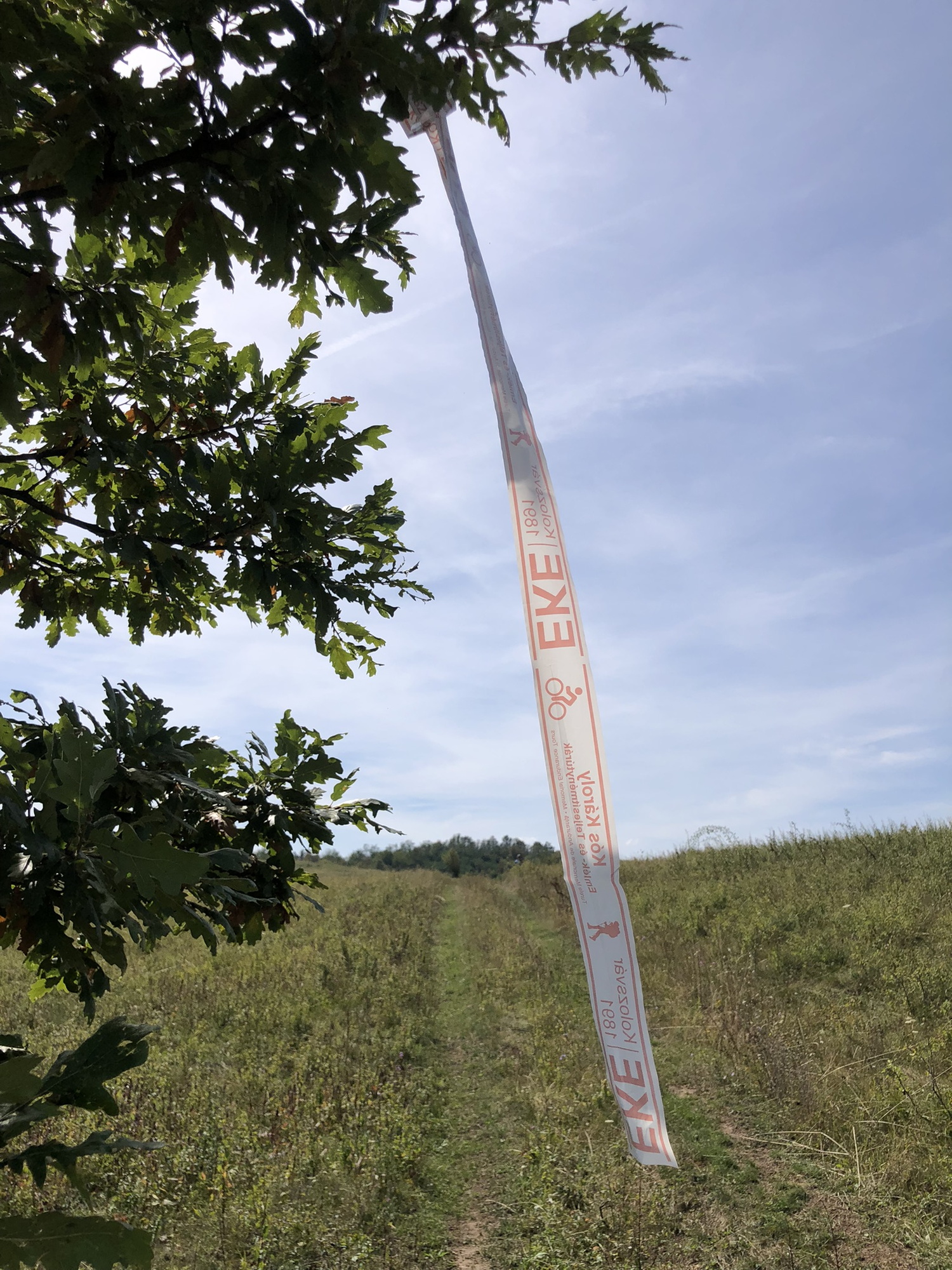 A túra előtti hétvégére ütemeztük az útvonalak kiszalagozását, hiszen annak ellenére, hogy digitális nyomvonalat és nyomtatott térképet is használhatnak a résztvevők, a tapasztalat azt mutatja, hogy legtöbben az általunk kihelyezett ideiglenes jelzésekre hagyatkoznak. A jelzési logisztika a többi teljesítménytúrához képest a Kóson a legbonyolultabb, hiszen nagyjából 75 km-nyi útvonalat kell kiszalagozni. László Tamással megegyeztünk, hogy ő kerékpárral kijelzi a Bátori-hegy és magyargorbói országút közötti szakaszt, Szőke Enikőék pedig vállalták a Kolozsvár és Bátori-hegy közötti táv jelzését, így hétfős csapatunk a gorbói úttól kezdődően vágott neki a feladatnak szeptember 6-án. Kacsó Timi és Virág Péter bevállalt egy közel 20 km-es távot a kalotanádasi útig, Venczel Enikő és Nóra a gyalogos 11 km-es táv útvonalát jelezte ki. Jómagam Balogh Andrással a Kispetri – Almási vár – Zsobok részt szalagoztuk, valamint a rövidítést Zsobokról Sztánára, Botondnak pedig maradtak azok a rövidebb szakaszok, amelyeket autós logisztikával gyorsan meg tudott oldani Zsobok, a Riszeg-tető és az Ordományos környékén. Amikor a gorbói országúton leraktuk Timiéket, feltűnt, hogy a megszokotthoz képest sokkal több teherautó haladt el óriási sebességgel, így aggódni kezdtem a hosszú túrák résztvevőiért, akiknek egy rövid szakaszon az aszfalt mellett kell haladniuk. Mint kiderült, amióta újraaszfaltozták az utat, a teherautók nem hajthatnak be Gyaluba, helyette a gorbói országúton kell eljutniuk a nádasi autópálya-felhajtóig. Mivel a parkolási lehetőségek is eléggé korlátozottak, gyorsan keresnünk kellett egy helyet, ahol a pontbírók az autójukat hagyhatják, s azon gondolkoztunk, hogy ideiglenes figyelmeztető jelzéseket is ki kell majd helyeznünk a száguldó kamionosok miatt. Közben érkezett egy kép Venczel Enikőtől, hogy Zsobok felé nagyon tönkrement és helyenként felgyűrődött az aszfalt, majd óvatosan hajtsunk.