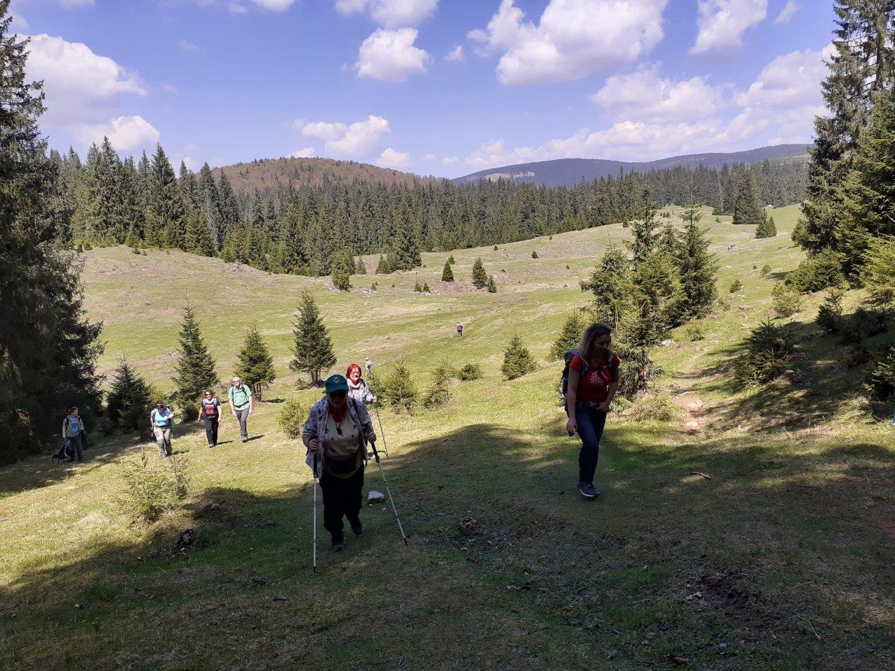 Május eleji túránk során kilenc km hosszúságú szakaszt jártunk be, Pádis menedékházától a Scărița-nyeregig. Ezen a rövid szakaszon is számtalan érdekes karsztjelenséggel találkoztunk. A menedékháztól indulva a Kerek tisztáson keresztül haladva számtalan kisebb-nagyobb víznyelő mellett vezetett az utunk, ezek egytől-egyig szárazak voltak, meglátszott rajtuk az utóbbi hónapok száraz időjárása. Letértünk a Ponor-vízkitöréshez, amelyet hatalmas köveken bukdácsolva közelítettünk meg. Különleges látvány volt a hegy gyomrából előtörő víz, amely a Ponor-rét felé igyekezett, akárcsak mi. A réten korábbi tavaszokon hatalmas tó alakult ki, most csodálatos zöld pázsit fogadott, vékony ezüstszálként kanyargó patakocskákkal. Innen aztán jobbra térve a Glăvoion, Bál-réten keresztül jutottunk el utunk végpontjához, a Scărița-nyereghez, ahol az autóbuszunk várt.