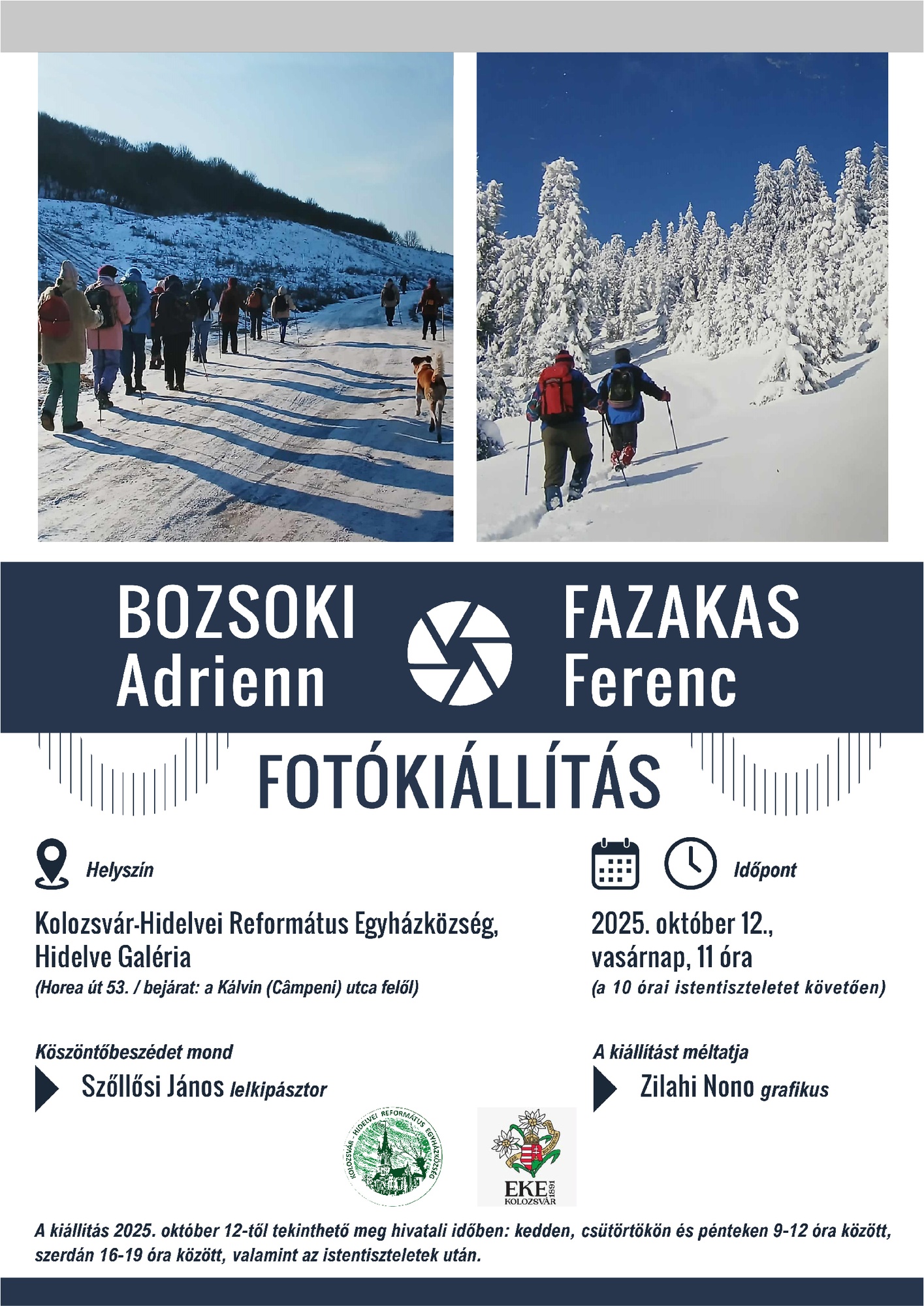 Szeretettel várunk minden érdeklődőt Bozsoki Adrienn és Fazakas Ferenc fotókiállítására a Hidelvei Református Egyházközség gyülekezeti termébe (Horea út 53. szám) október 12-én 11 órakor.