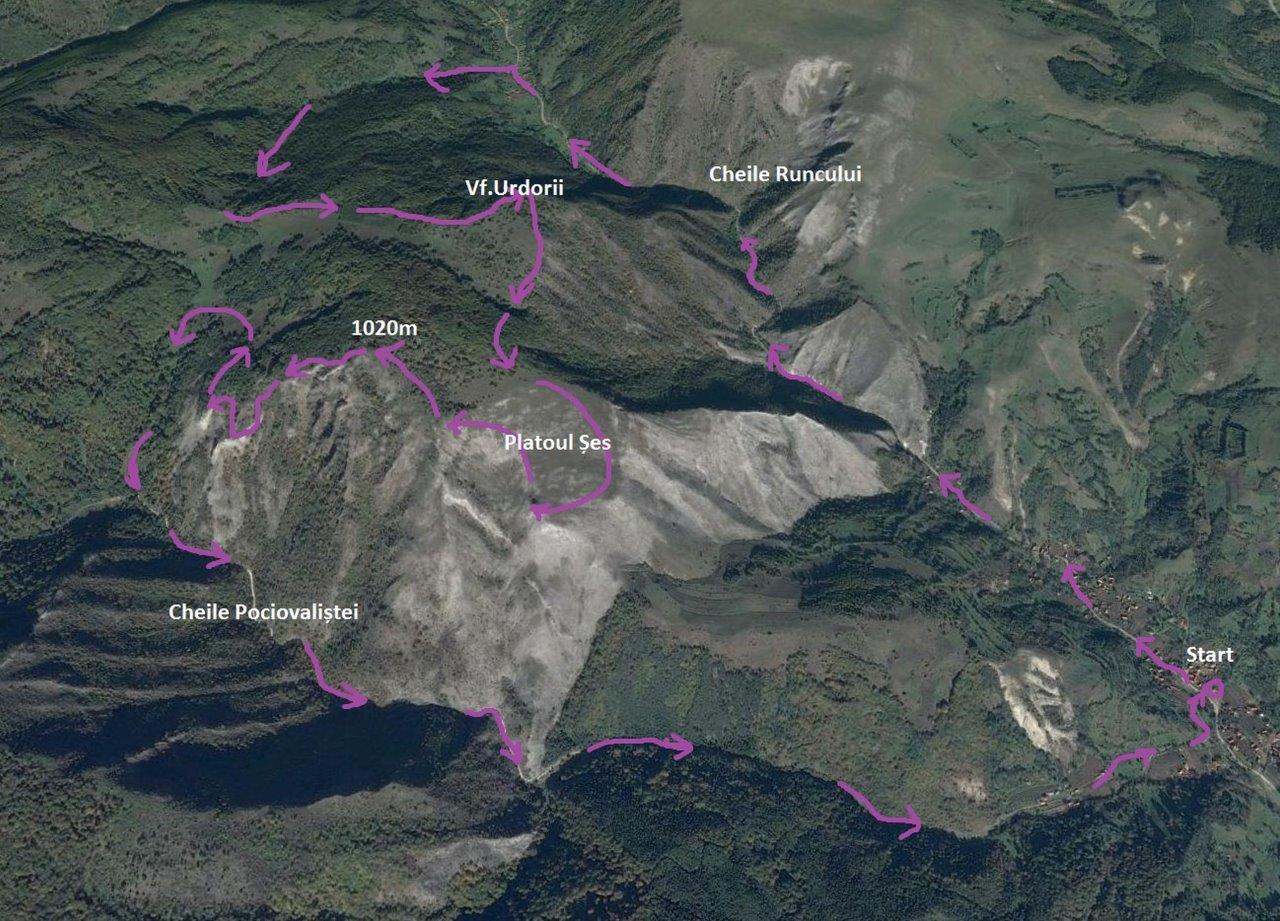 A gyalogtúra kiindulópontja Aranyosronk (Runc) faluban van, azon a helyen, ahol a Pocsováliste-szorosba tartó köves út indul (ezen a köves úton fogunk visszatérni).