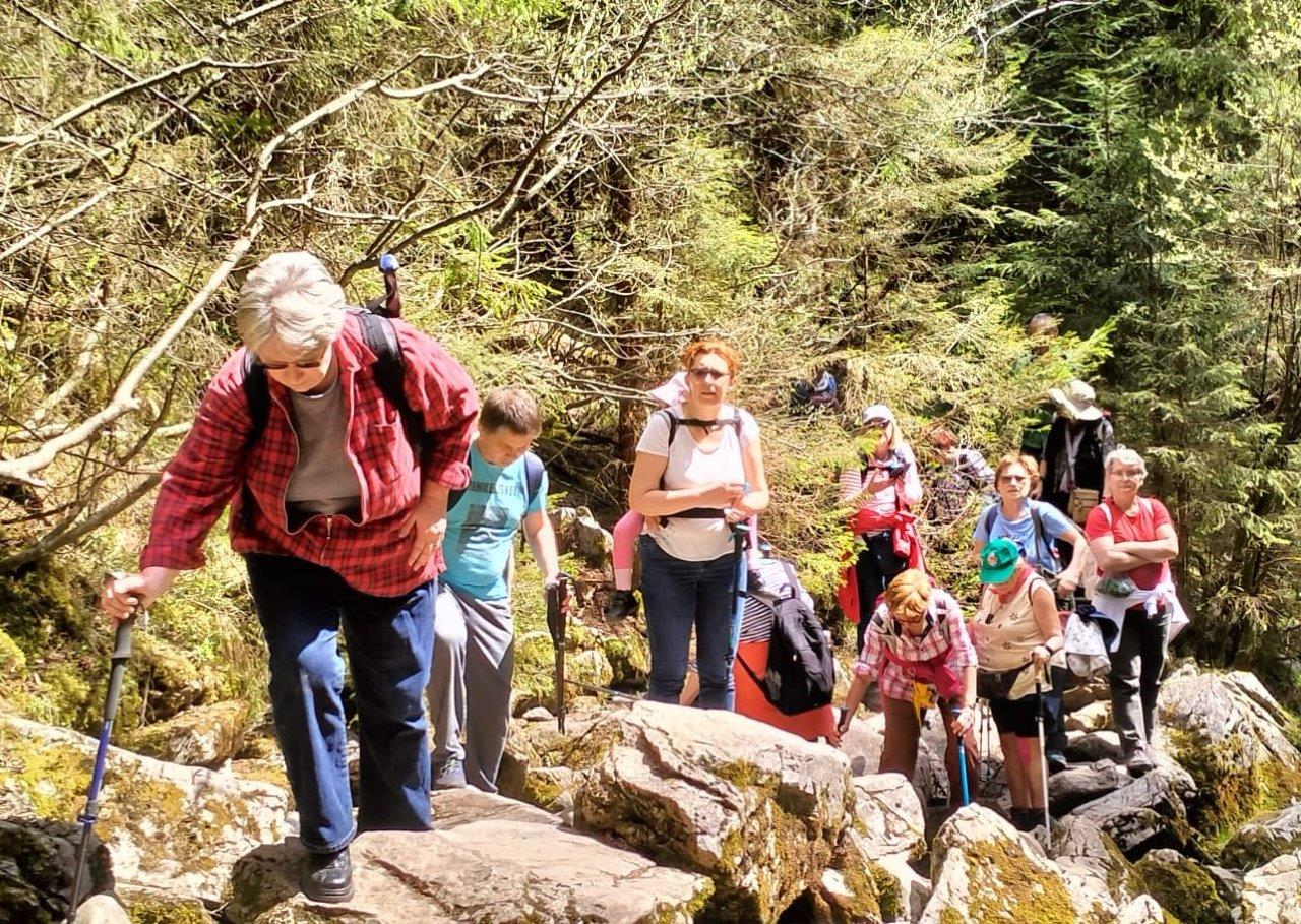 Május eleji túránk során kilenc km hosszúságú szakaszt jártunk be, Pádis menedékházától a Scărița-nyeregig. Ezen a rövid szakaszon is számtalan érdekes karsztjelenséggel találkoztunk. A menedékháztól indulva a Kerek tisztáson keresztül haladva számtalan kisebb-nagyobb víznyelő mellett vezetett az utunk, ezek egytől-egyig szárazak voltak, meglátszott rajtuk az utóbbi hónapok száraz időjárása. Letértünk a Ponor-vízkitöréshez, amelyet hatalmas köveken bukdácsolva közelítettünk meg. Különleges látvány volt a hegy gyomrából előtörő víz, amely a Ponor-rét felé igyekezett, akárcsak mi. A réten korábbi tavaszokon hatalmas tó alakult ki, most csodálatos zöld pázsit fogadott, vékony ezüstszálként kanyargó patakocskákkal. Innen aztán jobbra térve a Glăvoion, Bál-réten keresztül jutottunk el utunk végpontjához, a Scărița-nyereghez, ahol az autóbuszunk várt.