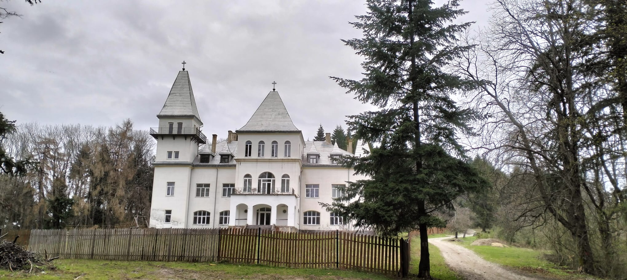 A kastély mellett elhaladva továbbra is a piros sáv jelzést követve folytattuk utunkat Sólyomkő várának romjai felé. Ezen az úton még senki sem járt a csoportból, akár felfedezőtúrának is nevezhetnénk az ezután következő részt. Szerencsére elég jó a jelzés, egyetlen helyen, a Termezeu tanya után történik meg, hogy nincs balra térést jelző nyíl, csak egy balra térő út és azon kb. 50 m távolságra ott a piros sáv jelzés, amit követnünk kell. Innen kezdve elég kanyargós úton ereszkedtünk úti célunk felé, de itt már nagyon jó a jelzés, csak követni kell és már elénk is tárulnak a felállványozott romok. A kastélytól a romokig vezető út a vártnál könnyebb volt, csak az utolsó szakaszon volt kissé meredek az ereszkedő. Itt már vendégmarasztaló sár sem volt, nyugodtan csodálhattuk az ébredező természet szépségeit, az avarból kiemelkedő, élénkzöld mohás részeket, a rügyező fákat, az itt-ott megjelenő tavaszi virágokat, a vígan csörgedező Sólyomkő patakját. A nemrég megkezdett felújítás miatt Sólyomkő várának romjai pillanatnyilag nem látogathatóak, a munkálatok befejezését a kiírás szerint 2026. június 30-ára ígérik.