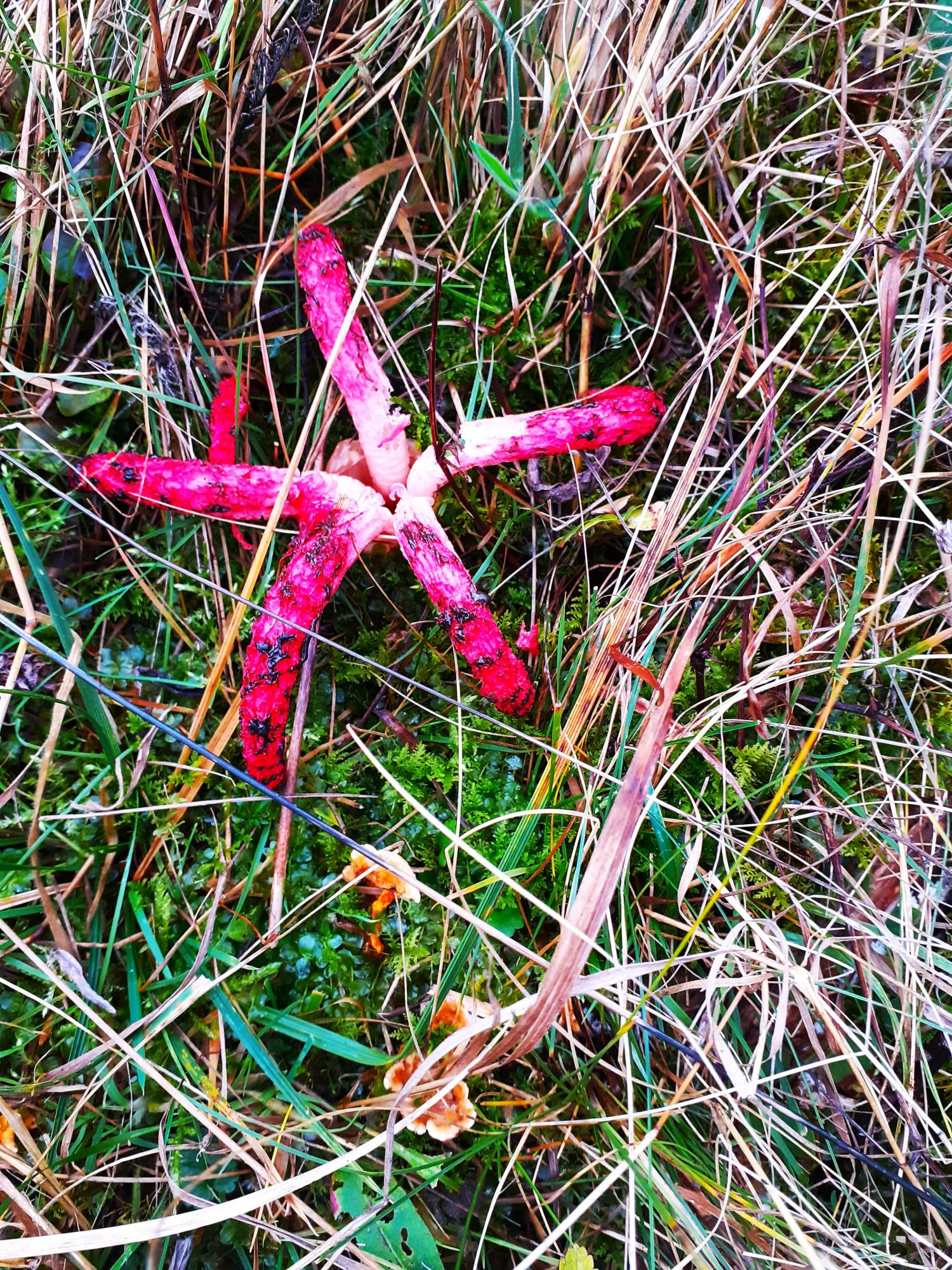 Különleges gombaritkaságot talált egyik túratársunk a Bivalyoson: a tintahalgomba (Clathrus archeri) a szömörcsögfélék családjába tartozik, Taszmániából származik, de Ausztráliában és Új-Zélandon is őshonos, ugyanakkor Európában is megtalálható. Külseje a gombáktól megszokottól nagyon eltérő. Fiatalon 3–6 cm magas, puha, kissé hengeres, tojásformájú, enyhén nedves tapintású. Idővel a külső burok felszakad, és a tőről 4–8 darab 5–13 cm hosszú narancs- vagy skarlátvörös, feketés mintázatú, polipkarokra emlékeztető képződmény emelkedik ki belőle. A törékeny karok kezdetben csúcsukon összenőttek, de fejlődésük során szétválnak és csillagszerűen hajolnak szét a föld felé. A karok belső felületén található sötétzöldes, barnás színű nyálkaréteg képezi a gomba spóráit. A termőtest alján látható fehéres bocskor a burok maradványa. Nem mérgező, de szaga és íze miatt az ehetetlen kategóriába sorolják. Mifelénk Csucsa környékén és a Kis-Sebes völgyében találtunk évekkel ezelőtt.