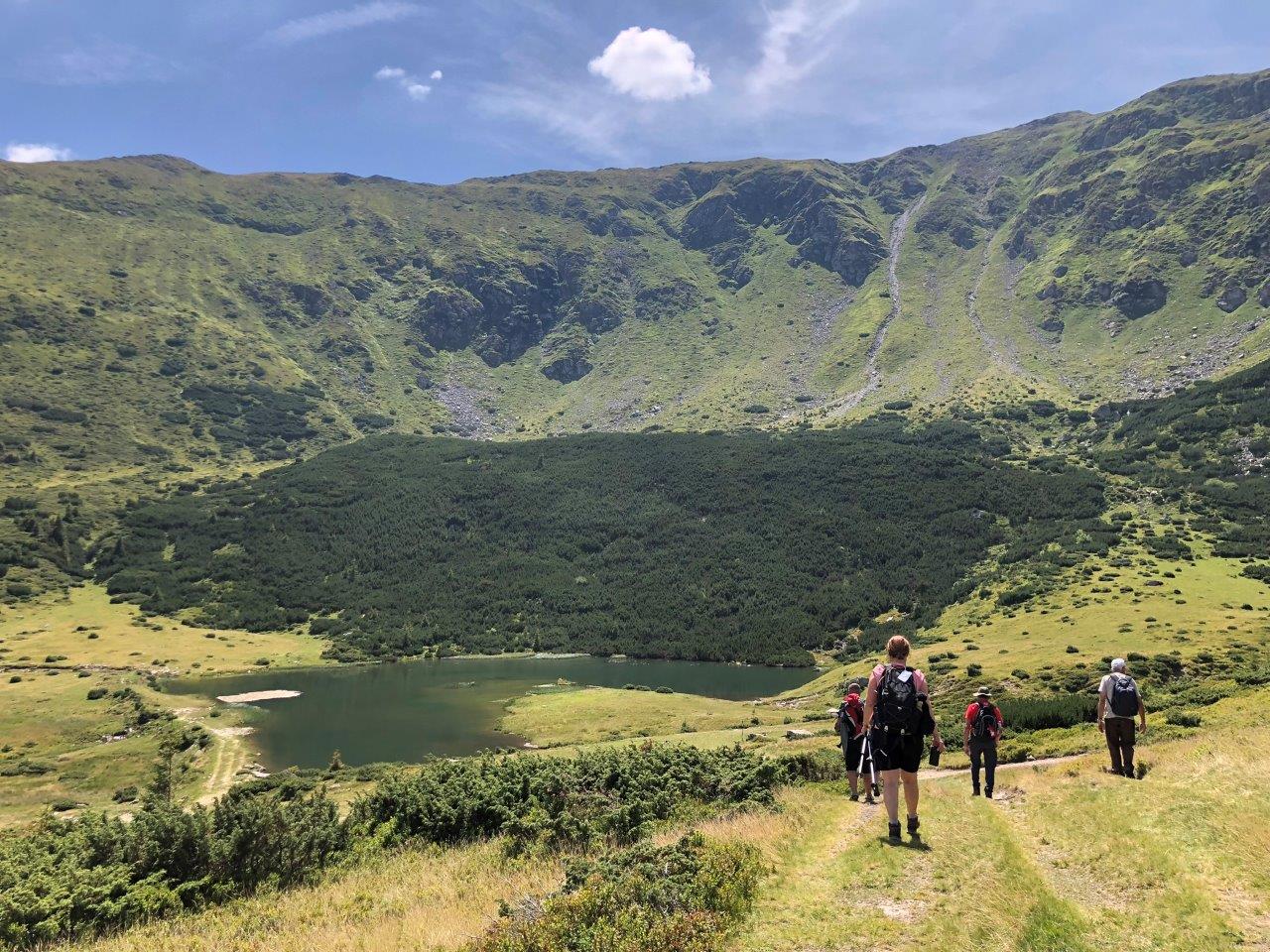 Az elkövetkezendő három napban a túrák kerültek főszerepbe, a színes felhozatalnak köszönhetően pedig mindenki megtalálhatta a számára legmegfelelőbb útvonalat. Én abban a privilégiumban részesültem, hogy mindhárom nap más-más túrára osztottak be segédnek, így szerdán a Szaplonca-kőhöz, csütörtökön a Lóhavasi-vízeséshez és Aranyos–Beszterce-tóhoz (Radnai-havasok), pénteken pedig a Fekete-hegyre (Mogosa) jutottam el. Mivel kedves túravezető társaim nem róttak rám sok teendőt, én is ugyanúgy élvezhettem a túrázást, mint a résztvevők, ráadásul pedig nagyon vagány embereket ismerhettem meg és izgalmas beszélgetésekben merülhettem el, miközben a kilométereket róttam. Nádudvary Györgyivel két nap is együtt túráztunk, így megismerhettem a történetét, hogy miként sodorta az élet Hollandiába, s ámulattal hallgattam, hogy családjával minden évben visszajárnak a táborba, már több mint 20 éve. Ekkor értettem meg igazán, hogy mit is jelent az embereknek az EKE Vándortábor: a gyökerekhez való visszatérést, a kapcsolatépítést, ráadásul pedig Erdély különböző szegleteinek felfedezését, ahova egyébként lehet, hogy sosem jutnának el.