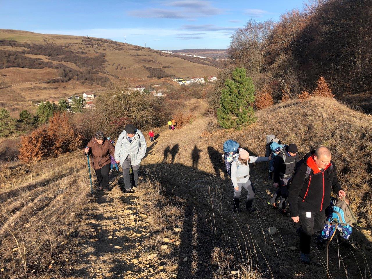 December 6-án reggel 10 órakor a Gorbó-völgyi egykori lőtér parkolójában gyülekeztünk verőfényes napsütésben. Bár már napokkal korábban megjósolták a szép időt, sajnos a decemberi zsúfolt időszak rengeteg családot lefoglalt, így az ismerős arcok közül sokan nem lehettek velünk. Ráadásul az utolsó pillanatban hat bejelentkezett család is visszalépett, így végül 43-an gyűltünk össze szombat reggel. A gyerekek az autókból kiszállva izgatottan mesélték, hogy kinek mit hozott a Mikulás, sőt néhányan meg is mutatták a cipőjükben talált ajándékot. Amíg az utolsó résztvevőkre várakoztunk az alig néhány fokos hidegben, a gyerekek futkározással és frizbizéssel próbáltak felmelegedni. Aztán pillanatokon belül teljes lett a csapat, így el is indulhattunk a sokak számára ismerős útvonalon, hiszen azok a gyerekek, akik részt vettek az októberi Hunyadi-teljesítménytúrán, nagyon jól emlékeztek, hogy merre fogunk tartani. Az első nagyobb emelkedőn hamar bemelegedtünk, s elégedetten néztünk le a völgyre, ahonnan elindultunk, hiszen már sokkal magasabban jártunk. Ezután az erdőben folytattuk utunkat, élvezve a puha avarban való gyaloglást. A kisebb túrázókra való tekintettel úgy döntöttünk, hogy lerövidítjük a túrát, így kihagytuk a Szent János-kutat, és egyenesen a Cérna-forrás tisztása felé vettük az irányt. A tapasztalt gyerekek olyan gyors tempóban haladtak, hogy alig tudtuk szedni utánuk a lábunkat, a kisebbek viszont lemaradtak szüleikkel, így a két csapat negyed óra eltéréssel ért a tisztásra, ahol energizáló szünetet tartottunk. A fiúknak nagyon megtetszett a pihenőhely mellett található mászós fa, így gyorsan birtokba vették, s pár perc múlva már mindegyik vastagabb ágon ült valaki. Néhányan lesétáltunk a forráshoz, amely szerencsére nem volt kiszáradva, így friss vízzel tölthettük fel kulacsainkat. Néhányan meg is jegyezték, hogy a teljesítménytúrán csak azután kezdtek el gondolkodni, hogy hol lehetett a forrás, miután már túlhaladtak a tisztáson található ellenőrzőponton.