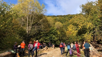 Ugyancsak népes, 49 fős csapattal a Pocsoválistei- és Ronki-szorosok látványos őszi körtúrájára indultunk szombaton Mezei Elemér szervezésében. A társaság egy része kisbusszal utazott Aranyosronk faluig, a túra kiindulópontjáig, a többiek pedig kiskocsikkal csatlakoztak. A hűvös, ködös reggel inkább novemberire, mintsem októberire emlékeztetett, viszont a Pocsoválistei-szorosban haladva lassan kitisztult az ég és a nap is előbújt a felhők közül, így a reggelinket kellemes, meleg napsütésben fogyaszthattuk el. Amint megkezdtük az emelkedést, ismét szürke felhők gyülekeztek, s lassan az eső is megeredt, előkerültek a kabátok, köpenyek.